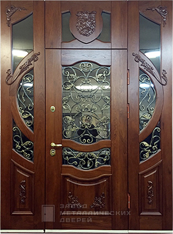 Широкая остекленная дверь с антивандальной фурнитурой №43 создана для парадного входа в частный дом или коттедж: много света за счёт аккуратного стеклопакета, а кованые элементы добавляют статус без лишнего пафоса. Снаружи и внутри — панели из натурального дерева: тёплый внешний вид, который приятно видеть каждый день. Каркас и полотно из профильной трубы 50×25 мм, лист холоднокатаной стали 2 мм, два ребра жёсткости и противосъёмные штыри 10 мм держат форму и усложняют жизнь «умельцам». Два контура уплотнения E+D помогают от сквозняков; утепление можно добавить опцией. Размер изготовим под ваш проём, хоть дверь и любит быть заметной. Широкая остекленная дверь с антивандальной фурнитурой №43 по выгодной цене с доставкой и установкой в от производителя.
